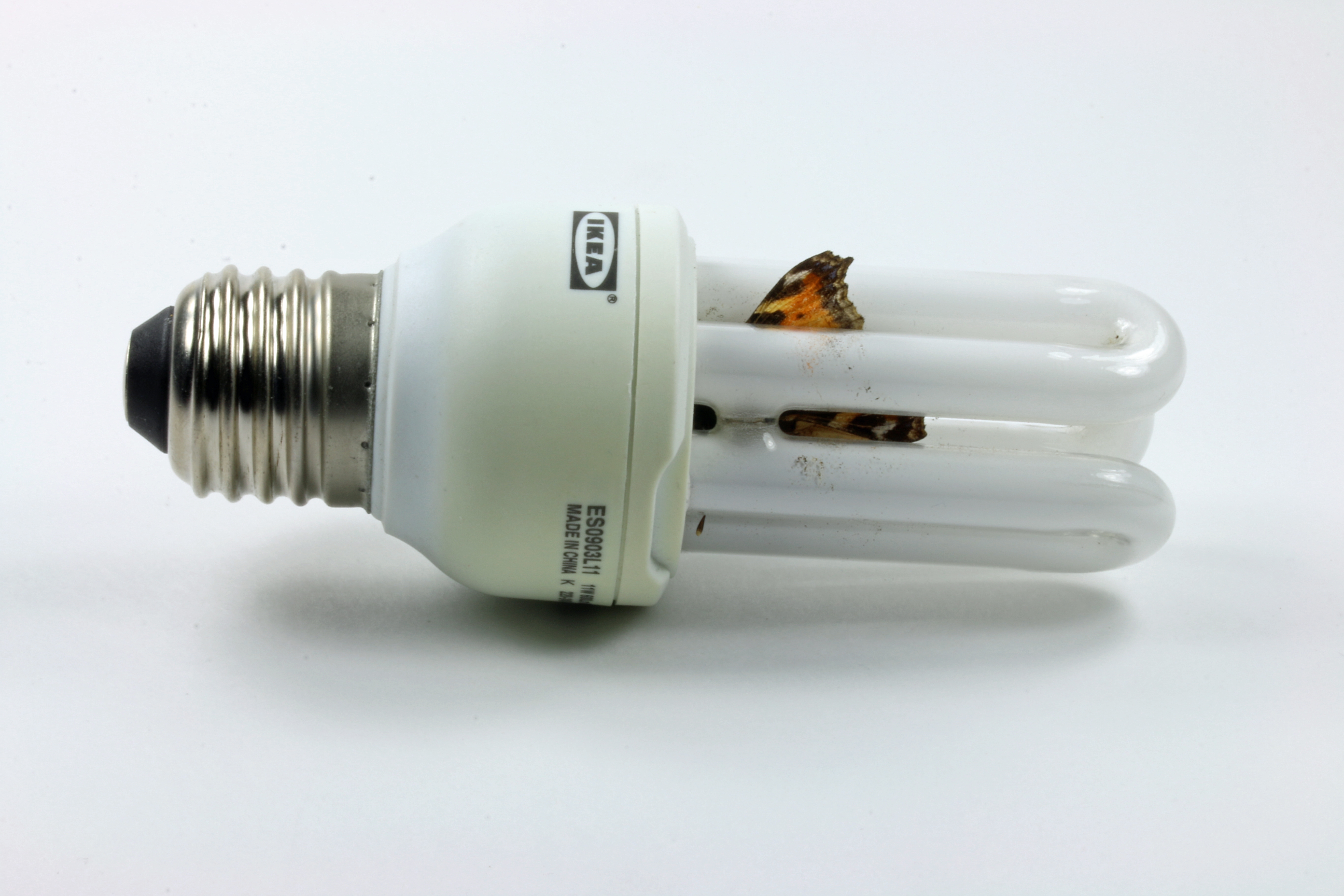 De rechtervleugel die tussen de lampbuizen naar buiten steekt, wijst erop dat de vlinder klem kwam te zitten. Vermoedelijk is hij overdag in de spaarlamp weggekropen en ’s avonds toen de sfeerverlichting aanging door de overvloed aan licht overvallen. Hoewel spaarlampen veel minder hitte afgeven dan gloeilampen deden, moet hij langzaam aan oververhitting bezweken zijn.