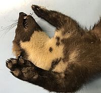 [3 juli 2019] Na de succesvolle vestiging van de steenmarter, is de eerste boommarter in Rotterdam nu ook een feit. Gisteren werd een volgroeid mannetje dood gevonden langs de Schiedamsedijk pal tegenover het Maritiem Museum, ter hoogte van de Schilderstraat in het hart van de stad. Het bijna anderhalve kilo zware roofdiertje was aangereden. Gemeentelijke boswachter Jochem Hagoort gaf onmiddellijk gevolg aan een melding van een ‘Tasmaanse duivel’ maar constateerde ter plaatse dat het een boommarter was. Hij bracht het stinkende kadaver naar het Natuurhistorisch Museum Rotterdam, waar de eerste Rotterdamse boommarter een plaats in de collectie krijgt.