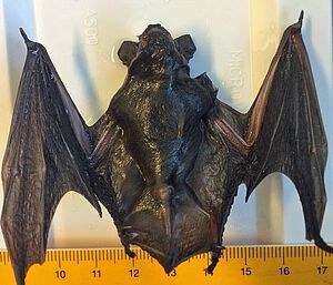 [30 oktober 2020] Onze Halloween Special uit de collectie ‘Dode dieren met een verhaal’ is de Toiletpot-vleermuis. Het is een volwassen ruige dwergvleermuis (Pipistrellus nathusii) die op 10 oktober 2019 verdronk in een toiletpot in Zaandijk. Een uiterst onfortuinlijk einde voor het diertje en best wel schrikken voor de vinder.