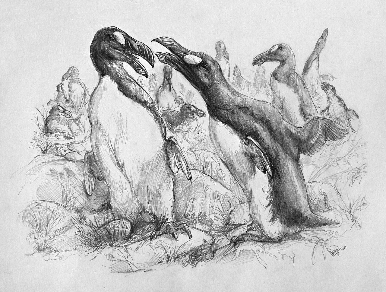 Deze grote zwart-witte vogel kon niet vliegen, maar wel zwemmen en duiken. De vogel leefde tot zo'n 170 jaar geleden in de noordelijke Atlantische Oceaan, van Canada tot IJsland. Hoewel hij er als twee druppels water op leek en zich ook nog eens zo gedroeg, was het geen pinguïn maar een lid van de alkenfamilie. De reuzenalk stierf omstreeks 1850 uit, als direct gevolg van het op grote schaal doodknuppelen voor hun vlees en veren.