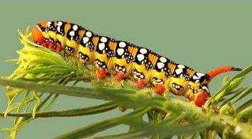 ; ik ben giftig, eet mij niet! De rups van de populierenpijlstaart maakt daar met z'n afschrikkende rode stipjes ook handig gebruik van. Terwijl hij niet giftig is, blijven de vogels wel op afstand.