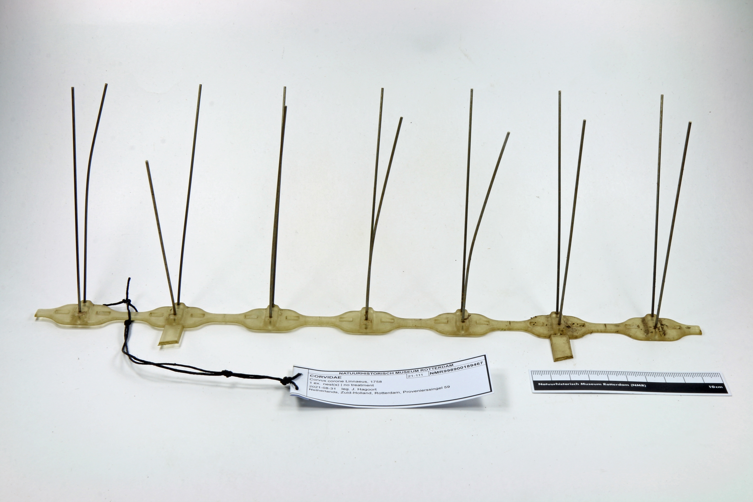> Losse anti-vogelpinstrip uit het kraaiennest NMR998900189467. (Het Natuurhistorisch | Natural History Museum Rotterdam)