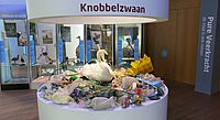 > Knobbelzwaan op (gereconstrueerd) nest van drijfvuil.