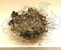 > nest van een stadsduif, gemaakt van ijzerdraad en kippengaas.